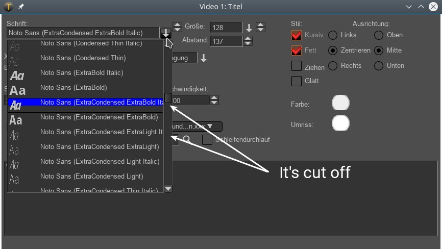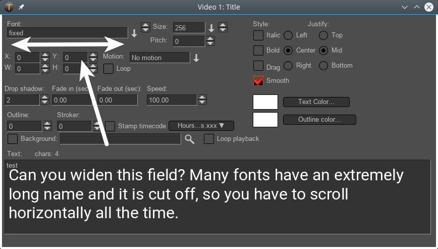 | Description | Can you widen the font field in the Title plugin? Many fonts have an extremely long name and it is cut off, so you have to scroll horizontally all the time. | ||||