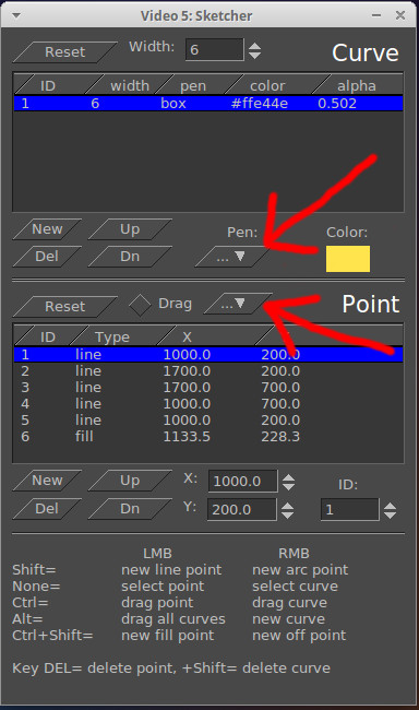 | Description | In the Sketcher plugin, two PullDown menu don't show the item selected. In section Curve the "Pen" PullDown menu don't shows the item when "Box" item is selected. In section Point you see only three point. Unfortunately, I think, it is "child" of the https://lists.cinelerra-gg.org/pipermail/cin/2019-March/000465.html In the SUV theme it is more evident than the Unflat theme. | ||||