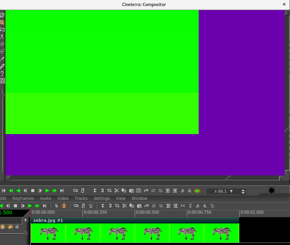GIT checkin fixes the background switching to black when using the OpenGL driver. Another improvement was checked in that fixes the "flash" that occurred in a couple of different places when you restart playing after having stopped. And now for the elephant in the room! The boundary problem is due to a "fractional pixel" which is a result of odd dimensions (odd dimensions meaning in this case, not divisible by 2). For example, when media that is 1303 x 1017 (an example is the webp video in note 2391) is loaded - i.e. not even numbers. the session takes on those dimensions. So, using the OpenGL driver, this fractional pixel appears as a boundary on the bottom in the Compositor. CinGG does not like these odd dimensions and in fact when you load the above video, you get the error message of: "/root/Downloads/0000237...of the compositor.webp's rersolution is 1303x1017. Images with odd dimensions may not decode properly." In the case of using the X11 driver, this oddity results in a fractional pixel border on all 4 sides as opposed to just the bottom as in the OpenGL driver. You should make a note of the fact that if you create a New project or try to change Format dimensions in that menu to odd numbers, the program changes them to even. There is a very good reason for this to avoid these types of problems. Here is the way to get past the OpenGL bottom boundary problem. Bring up the camera in the Compositor and change the Y coordinate to 0.500 to compensate for the fractional pixel that resulted from odd dimensions. In the case of using the X11 video driver, add 0.50 to both the Y and X coordinate. A demo illustrating that if you use even numbered dimensions format (zebra.jpg), it works as expected is at: https://streamable.com/at6rz The first part of the demo shows background color is working as expected. The second half shows the ERROR MESSAGE when odd dimensions are loaded warning of potential problems and you see the boundary. It also shows how you can work with this. |