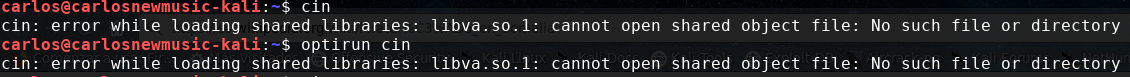 | Description | cin: error while loading shared libraries: libva.so.1: cannot open shared object file: No such file or directory | ||||