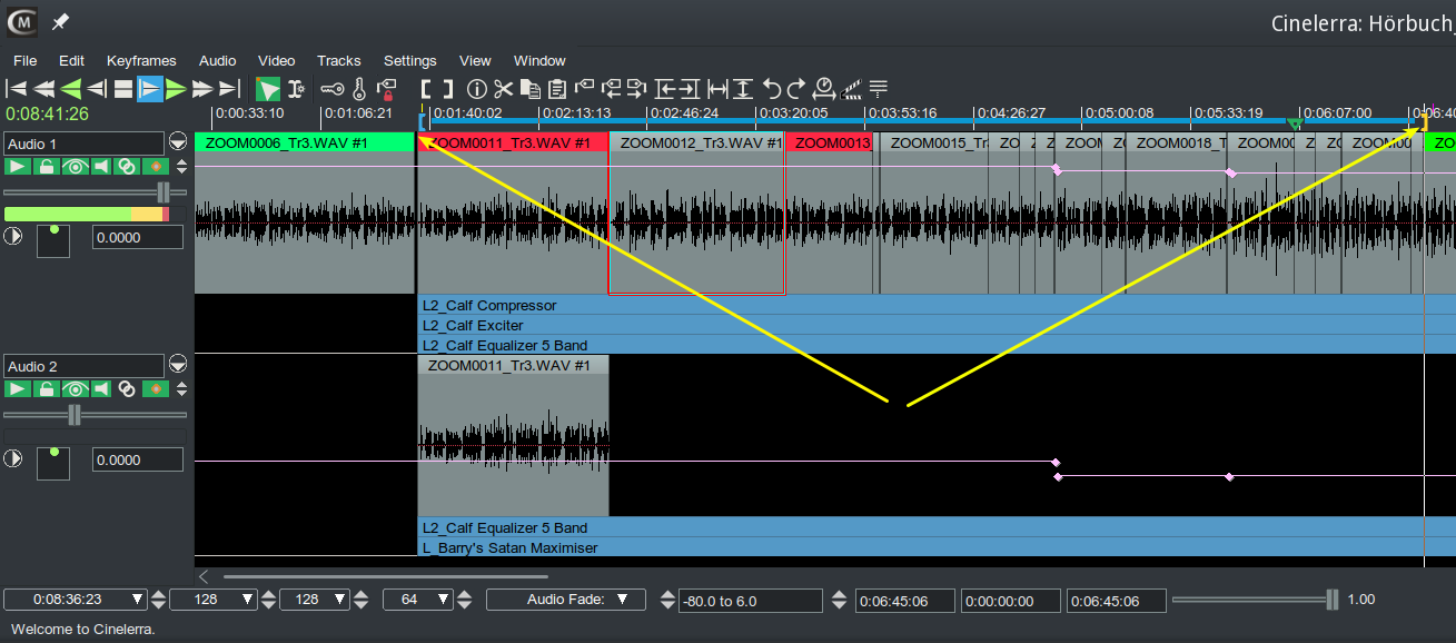 | Description | I am currently working on an audio book. I noticed that I can only change the color of direct marked video & audio files in the timeline. With a lot of media in the timeline this is very cumbersome. It would be great if I could change the color of the bars of several files at once between in- and outpoint, or in a selected area. This way I can divide my audio book into different sections and better navigate through them. |