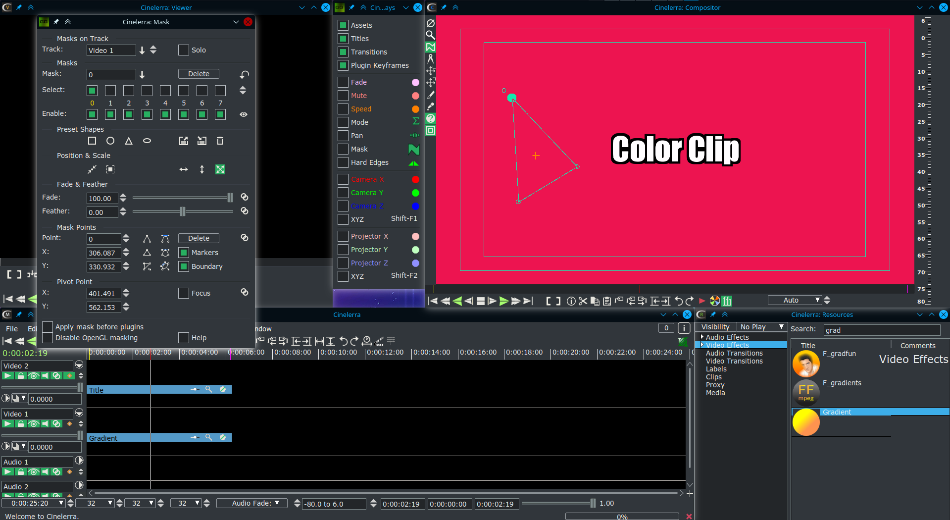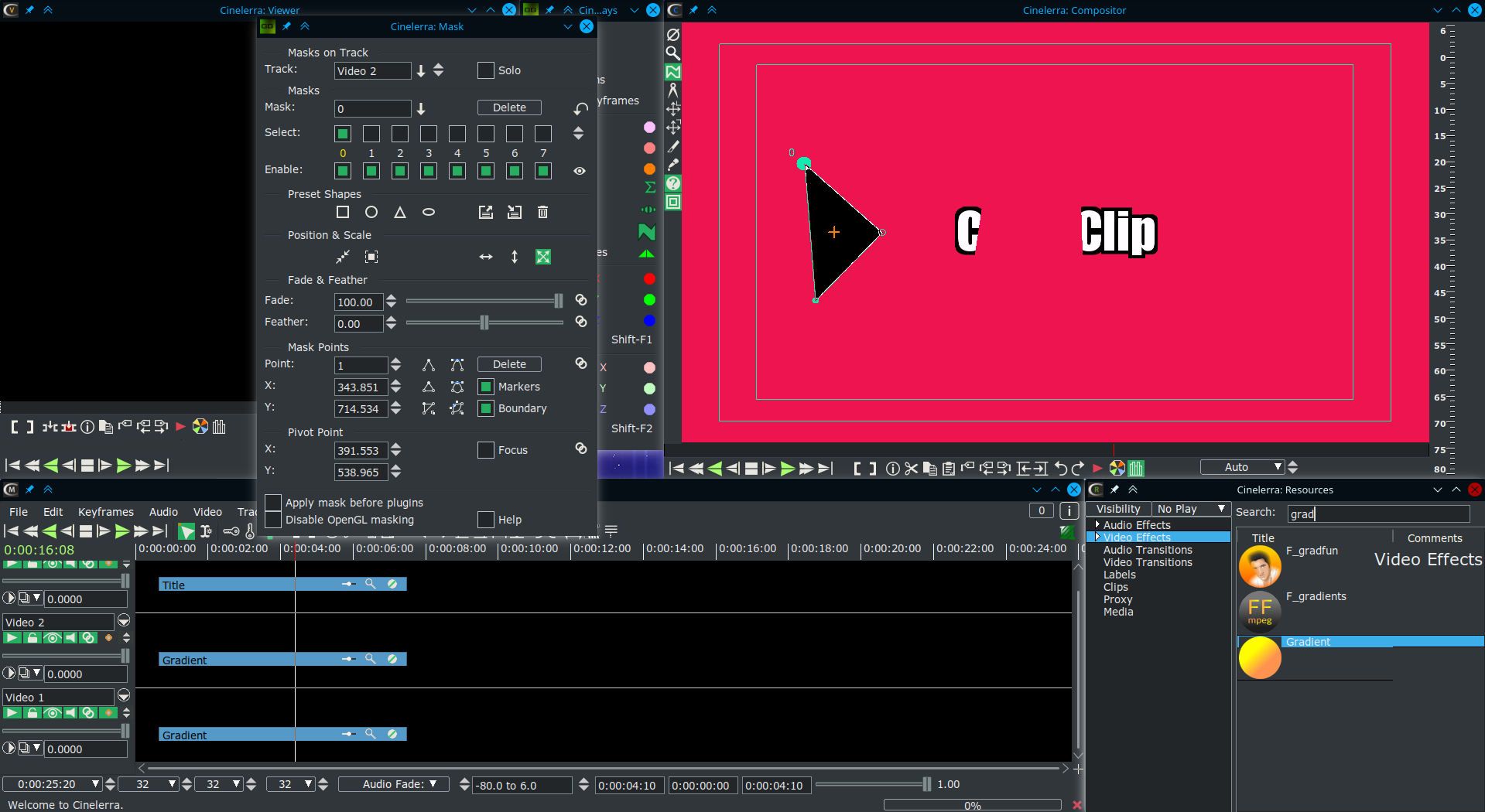 | Description | When I add a mask on the video track of the Gradient effect, the mask doesn't hide the effect. On Title, the mask works well... | ||||