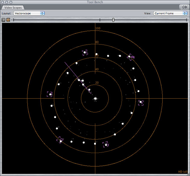 @All A very good job, guys! By my tests, unfortunately, the vectorscope instrument is uncalibrated, for me: the color wheel do not match with video test patterns used as a technical reference. The Andrea_paz grid is right (great work Andrea!). I do not remember where I downloaded the test pattern and if there may be copyrights to share it, I dont’ know. (I hope not, otherwise I am an outlaw) You can download the test pattern from www.visi1.org/temp/ColorizedGrayscale_v-1080p-30fps_a-1tickPerSecond.mov If you put it in the timeline there are 7 important steps in the video, and you can see on top-right corner of the video: R000, Y060, G120, C180, B240, M300, R360. These should match with the Andrea_paz’s grid and, of course, with the color wheel. If someone can confirm or less it would be useful. Thanks! |