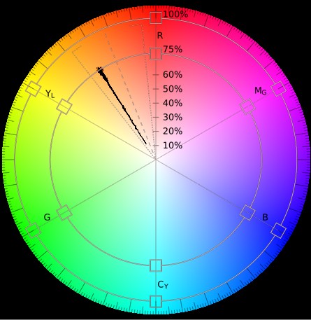 I added my final (I hope) PNG for (no standard) vectorscope. After a few of research (reading) I have changed the skin zone in the PNG. Skin zone goes from 6 degree to 38 degree. Center at 22 degree. Red color at 0 degree (North). You can see the sector area on North-West of the ColorWheel. The degree information from "Skin Colour Analysis" http://homepages.inf.ed.ac.uk/rbf/CVonline/LOCAL_COPIES/GONG1/cvOnline-skinColourAnalysis.html You can find different source about the skin but I have tested it with some reference image for skin. It seems to me good. Tell me if it (font, character, lines, colours, ...) is good for you. Try it with your test, please. Any feedback is welcome. PS: I called the PNG, Sandy but you can change it as it is better for Cin. =) Cin version: Thu, 16 Apr 2020 00:12:20 +0200 (16:12 -0600) |