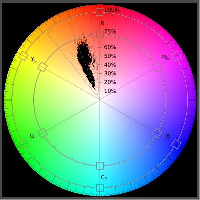 Thanks @Andrea_Paz and @PhyllisSmith ! Andrea, about your "skin-test.jpg" I don't know. Can you tell me where did you find it, please? (I guess on a site). It is a specific target for skin? I tested the "skin line" (at 22°, and the area from 6° and 38°) with different test charts and they confirmed the "Skin Colour Analysis" theory. But I really don't know. For example, I downloaded a test chart in the following site (I am afraid I can not put here the test chart for copyright): https://www.ppgba.com/image-competition/monitor-calibration-test-images/ A test of mine (Vectorscope_Sandy_skinTest1.ogv) on https://streamable.com/tc9qrt @PhyllisSmith I think my Sandy is Okay but I am not an expert for that. I used my brain (and inside there is only one neuron). ;-p If possible, I would like to know others opinions about Vectorscope wheel and the skin line, for example by @Sam, @Olaf, @Pierre, @MatN, @RafaMar. Thanks. |